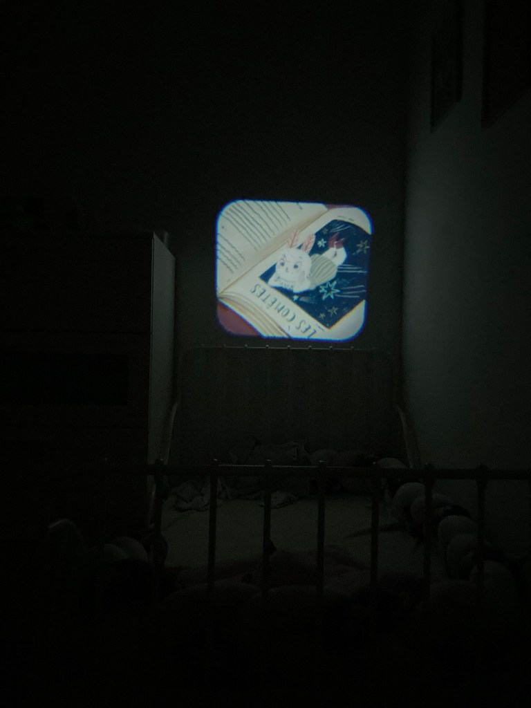 Sötétben vagyunk. Egy felé nézünk. A világosságot fürkészi a tekintetünk. Történeteket találunk ki. Elnevezzük a szereplőket. Más varázslat ez, mint a képeskönyv. Nem kész anyaggal dolgozunk, hanem mi magunk válunk mesélővé.