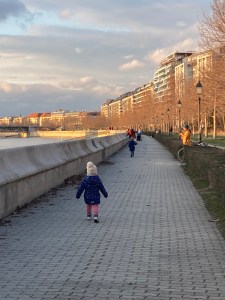 Egyik délután bementünk Peti elé Budapestre. Leparkoltunk a lányokkal, mondtam nekik, hogy apa pont velünk szembe fog sétálni, menjünk elé. Pár perc után nyűgösen kérdezgették, hol jön apa? Nem tudott elég szép lenni a folyó, a gyönyörű színekben pompázó égalja, a magas építmények. Hol jön apa? Én láttam meg először a piros kabátot, majd a lányok is. Rohanni kezdtek, és mosolyogva kiabálni. A legtöbb újratalálkozáskor így fogadnak bennünket. Tudom, hogy múlandó, mégis olyan jó lenne, ha megmaradna.