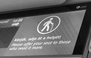 Az angol fordítás mintha pontosítana. Csak annak kell átengedni, akinek nagyobb szüksége van rá. Na de ki az? Csak a néni, bácsi, várandós? Mi van, ha nem látszik kívülről valakin, hogy alig bír a lábán állni, hogy épp a kemoterápiáról tart haza, hogy az apja temetésére viszi a busz, hogy most törték össze a szívét, és belül zokog?