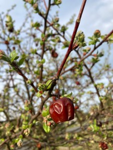 A zöldellő rügyek tengerében oda nem illő, összeszáradt díszalmák tengődnek. Miért nem ereszti el a régit? Tettem fel a kérdést egy hónapja a kopár ágakat bámulva. A kontraszt mostanra még kiélezettebb.
